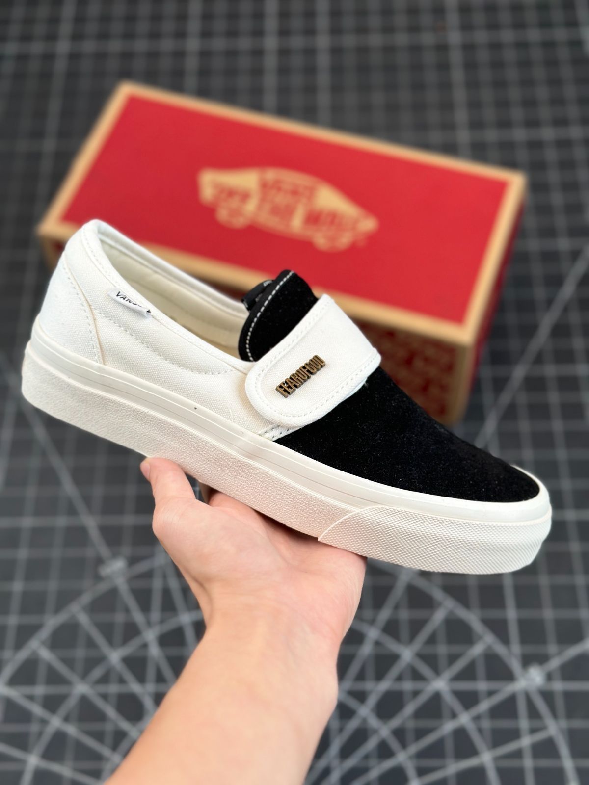 この Fear of Fog と Vans のコラボレーションモデル Slip - On 47 V DX FOG は、ハイストリートな雰囲気を出しながら、?白のクラシックな配色で大人の品位を演出します。マジックテープ仕様のスリップオンタイプで、簡単に履き脱ぎができ、ラクながらもファッション性の高い一足です。