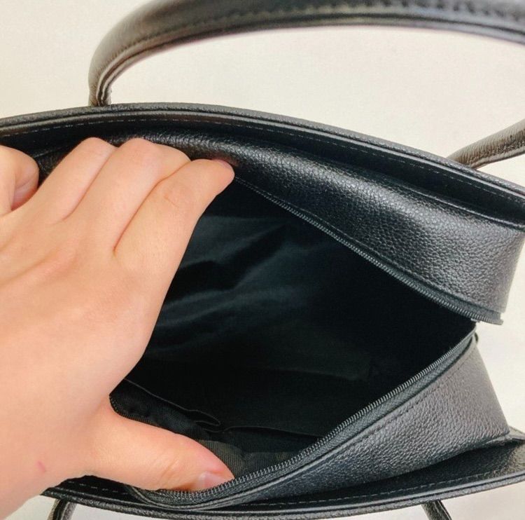 持ち手、マチ、底に牛革を使用した横長タイプの利休バックです。