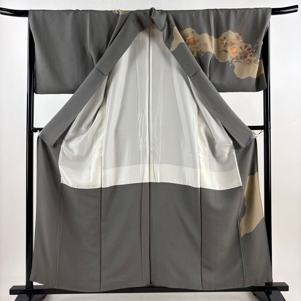 訪問着 身丈158.5 cm 裄丈67 M 袷 花唐草 道長取り 刺繍 灰色 正絹 秀品
