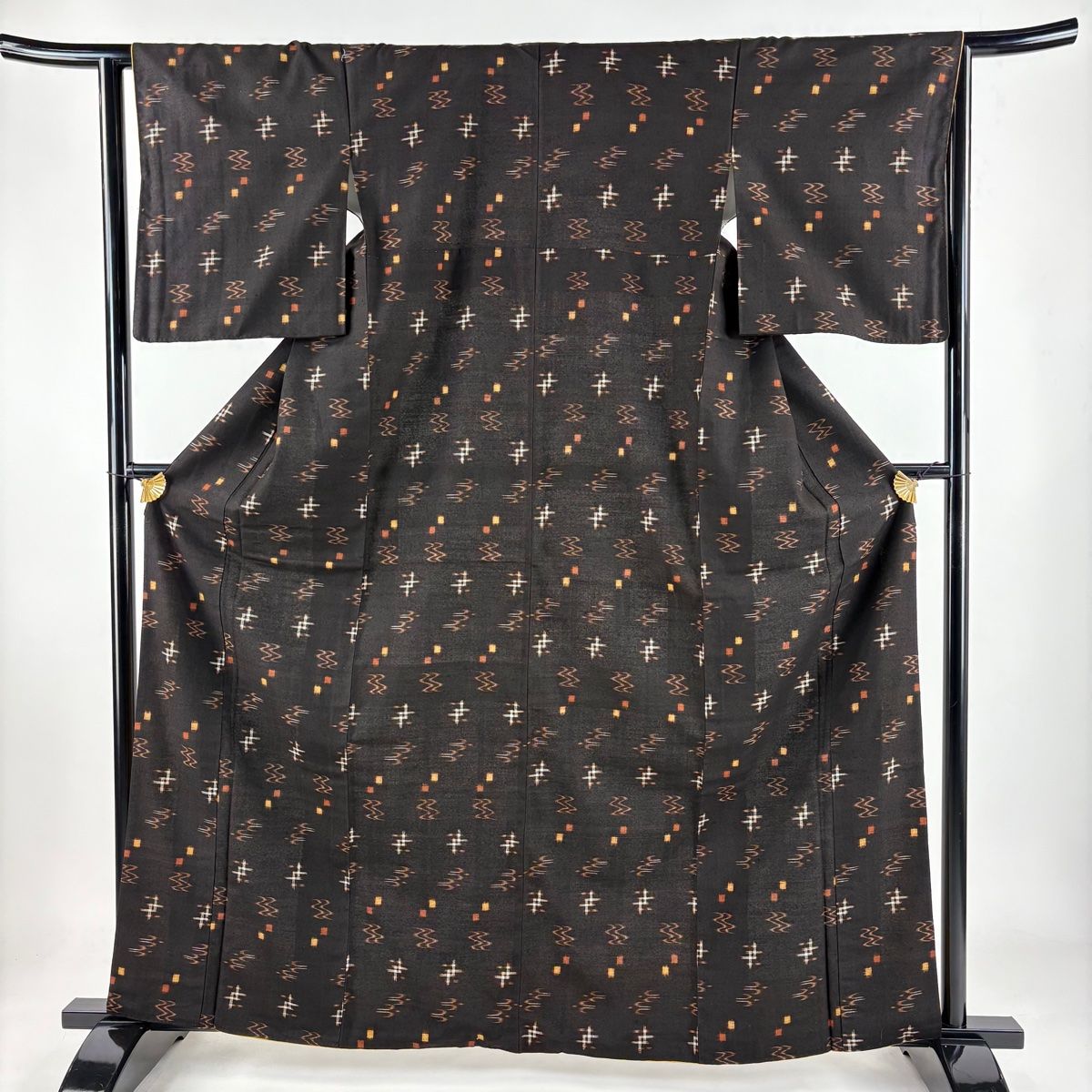 紬 身丈163 cm 裄丈63 S 袷 本場久米島紬 証紙 燕 井桁絣 焦茶色 正絹