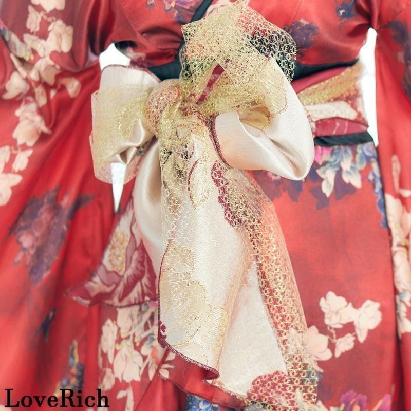 LoveRich フリル 豪華 蝶々柄 花魁 着物 ドレス イベント コスプレ キャバドレス ハロウィン