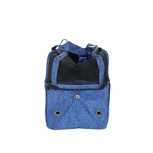 デニムプリントのため、柔らかくて軽く持ちやすいです。※デニム生地ではございませんのでご注意ください。天井部分のカバーはボタンで留めることができ、ファスナーで開き口が調整可能になっております。