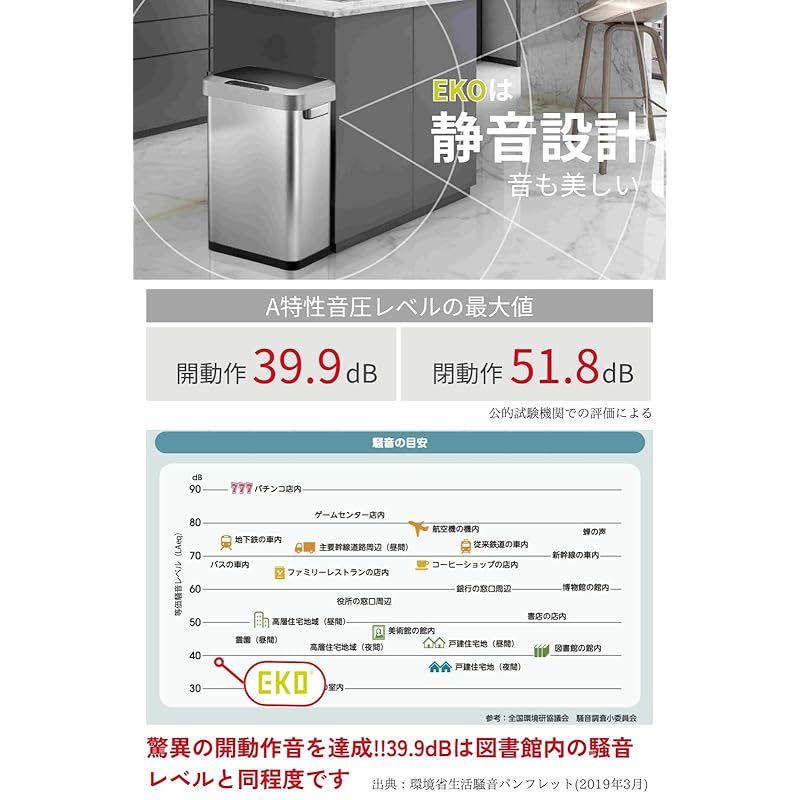 EKO ゴミ箱 自動開閉 ホライゾンセンサービン ホワイト 45 L ふた付き インナーボックス無し EK 9262 P WH