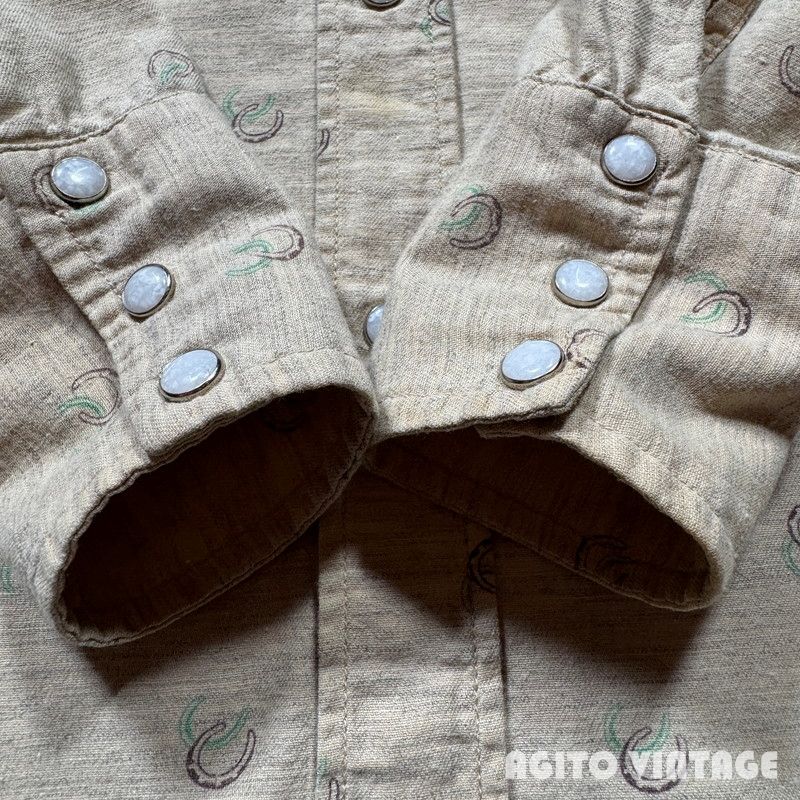 50 s TEXAS TOGS テキサストグス プリントコットンウェスタンシャツ 馬蹄柄 絣柄 フルスナップボタン S相当