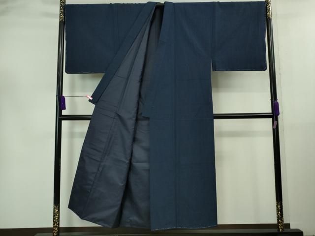 平和屋着物 上 男性 紬 アンサンブル キングサイズ 長襦袢 袷 長羽織セット 濃藍色 kh 5