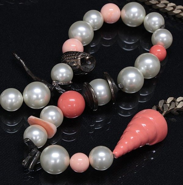 レア! シャネル CHANEL ヴィンテージ パールチェーンベルト ココマーク シェルモチーフ ピンク×ホワイト 05C【72084】