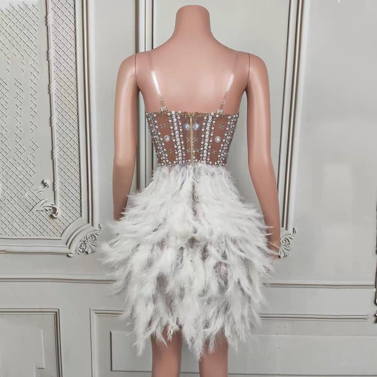 社交ダンスドレス ベリーダンス衣装 フェザーヘム&スパンコール ミニドレス|リゾート パーティー用 羽根 4 選択