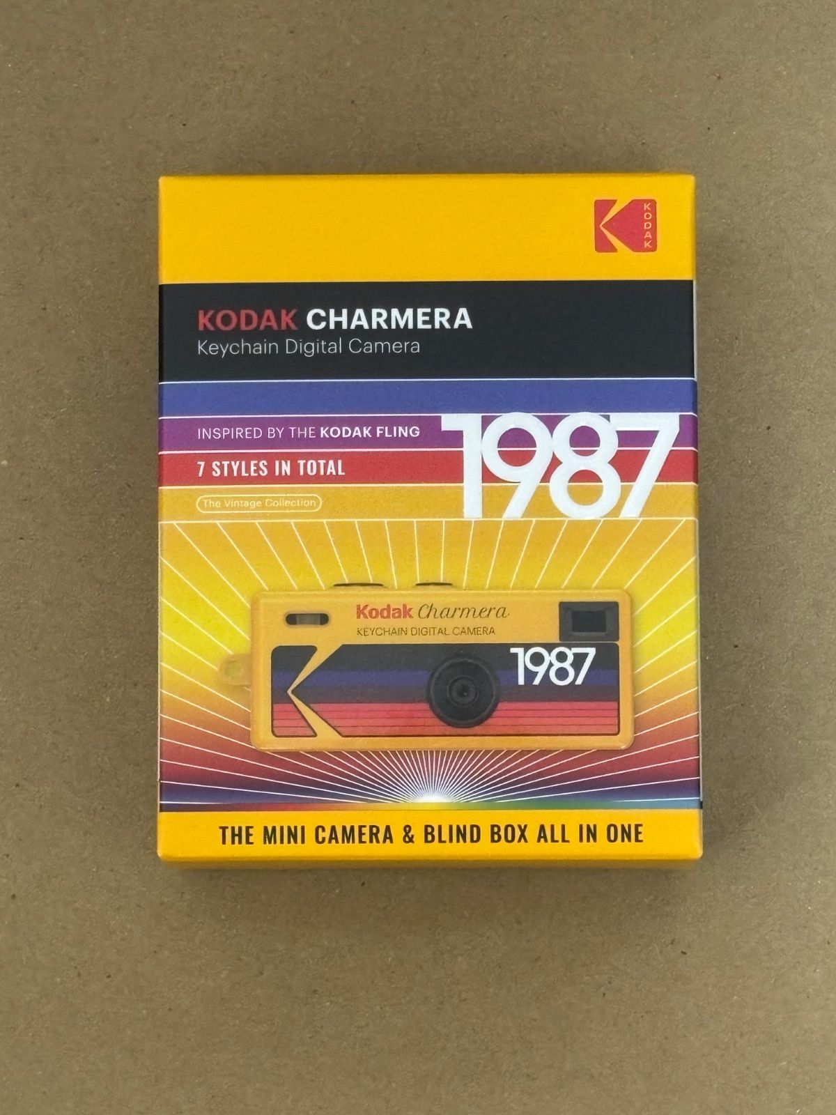 KODAK CHARMERA キーチェーンデジタルカメラは、80年代に発売されたコダック初の使い捨てフィルムカメラ「Kodak Fling」のデザインに着想を得たミニチュアデジタルカメラです。