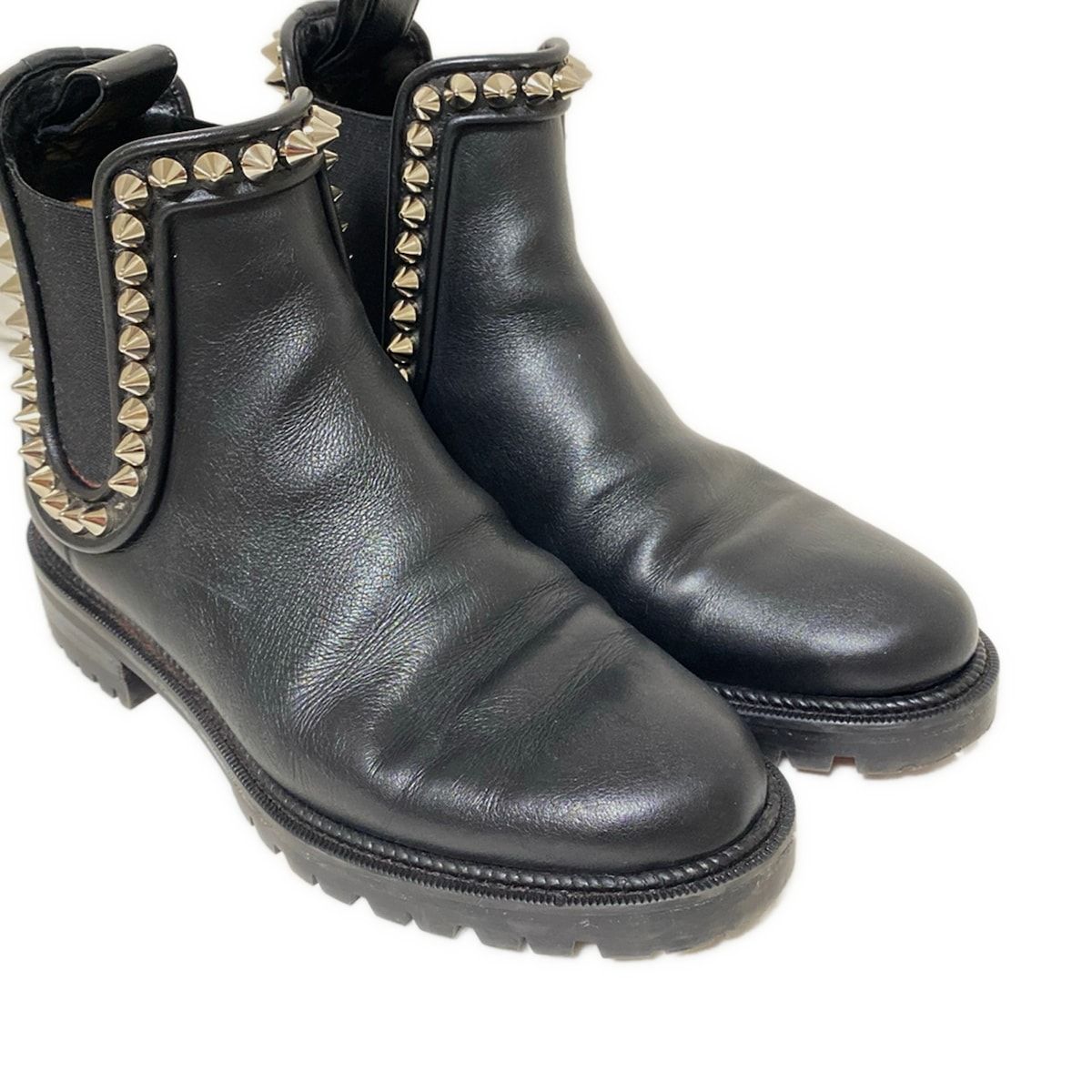 クリスチャンルブタン ショートブーツ 36 レディース - 黒 スタッズ サイドゴア レザー