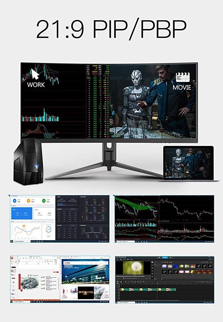 34インチディスプレイの超広視野角は、分割画面をサポートします。