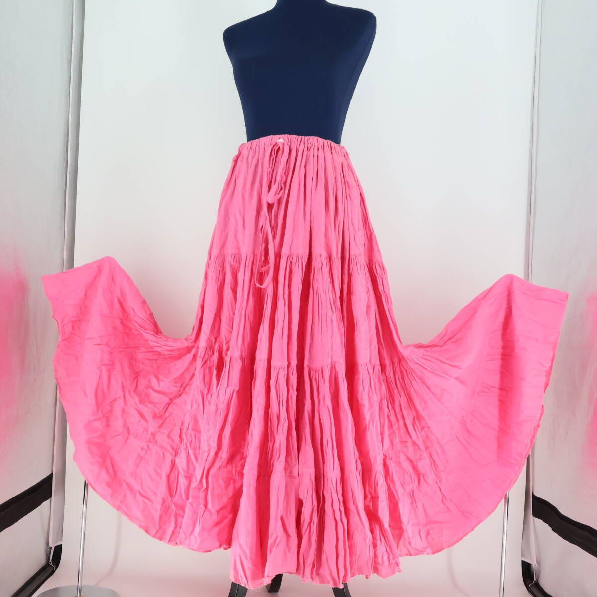 ベリーダンス用衣装 ピンク MNB ジプシースカート ボリューム 無地 フ フリル 華やか かわいい 女性らしい 明るい きれいめ レディース 明るめ ひらひら ロング エレガント タイ 女性用 ダンス ダンスウェア シンプル 鮮やか
