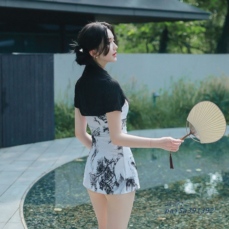 水着 レディース ワンピース ショートパンツ ツーピース 露出 プール ママ水着 キャミ 控えめ 体型 チャイナドレス 風 大人水着 学生 襟付き カバー 海水浴 pai 5 a 391392