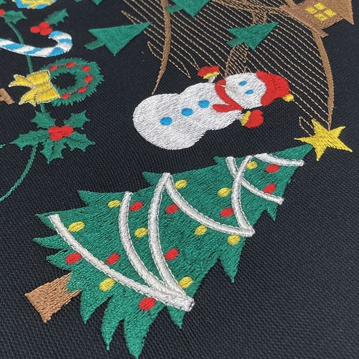 未仕立て品 名古屋帯 九寸帯 刺繍 サンタクロース 黒 正絹 西陣 大光謹製