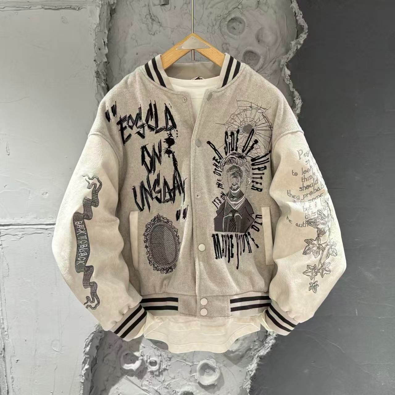 こちらは、美式ヴィンテージとハイストリートスタイルを融合した刺繍入りスタジャン風ジャケットです。