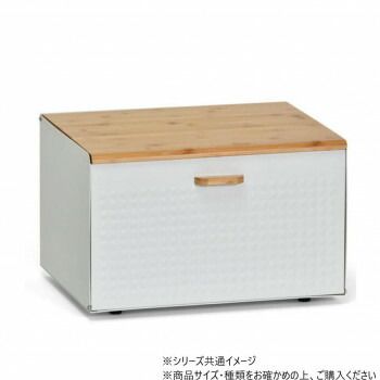 前板にダイヤプレスを施した凹凸のあるデザインと、天然木の天板がおしゃれなブレッドケース。商品幅も40cmあるので、一般的なトースターなども上に置く事ができる大型サイズで、中に出し入れが可能な収納棚付きなので、間仕切りにして使い勝手を良くしたり、中棚を外に出して使えば収納力もアップできます。収納力と機能性とデザイン性に優れた人気のブレッドケース。