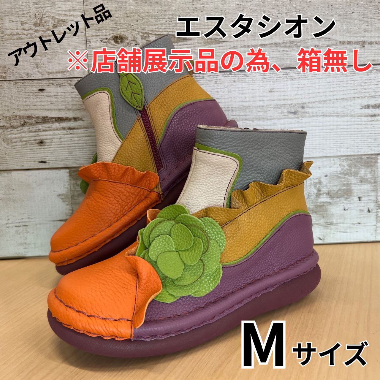 Estacion エスタシオン 立体 フリルフラワー本革ショートブーツ Mサイズ